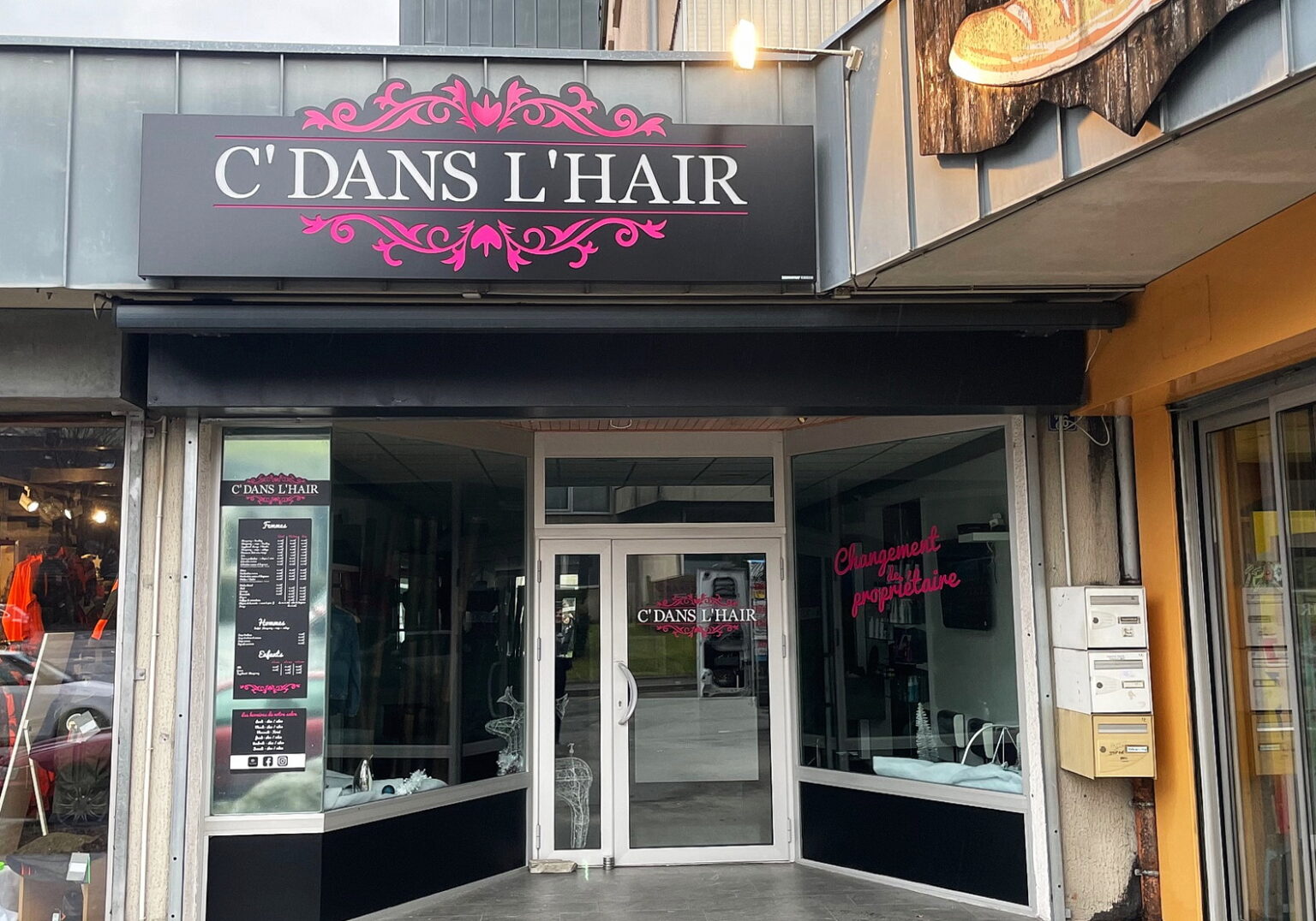 Changement de propriétaire pour le salon de coiffure Tendance JD à Sallanches, qui s’affiche désormais C’Dans L’Hair ! Nouvelle enseigne lumineuse cartes de fidélité, bons cadeaux, vitrine…