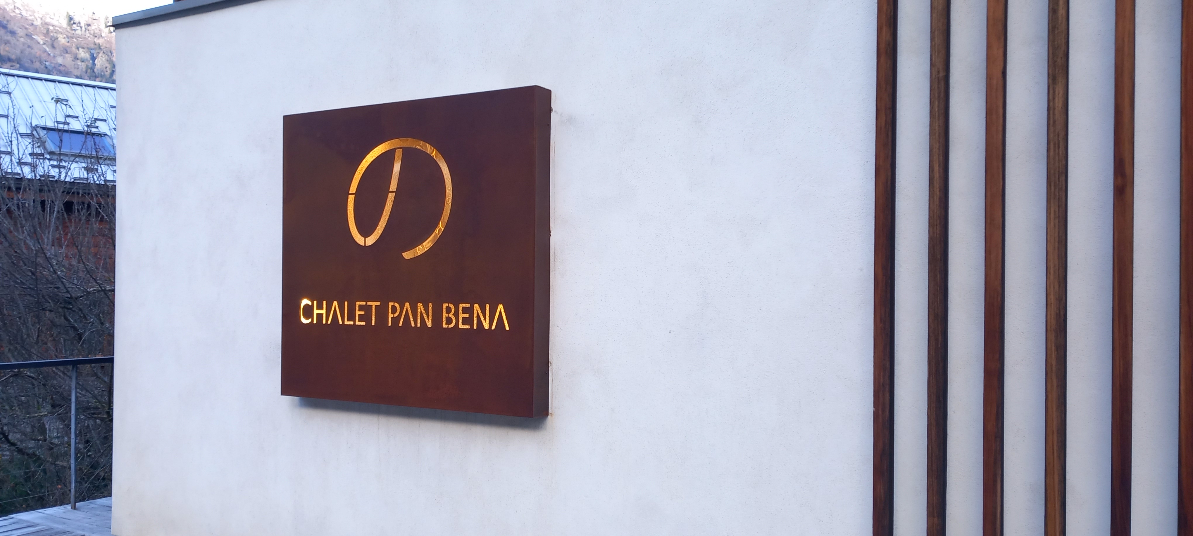 Création d’une enseigne lumineuse pour un chalet en location aux Houches. A découvrir sur https://aohouse.fr/