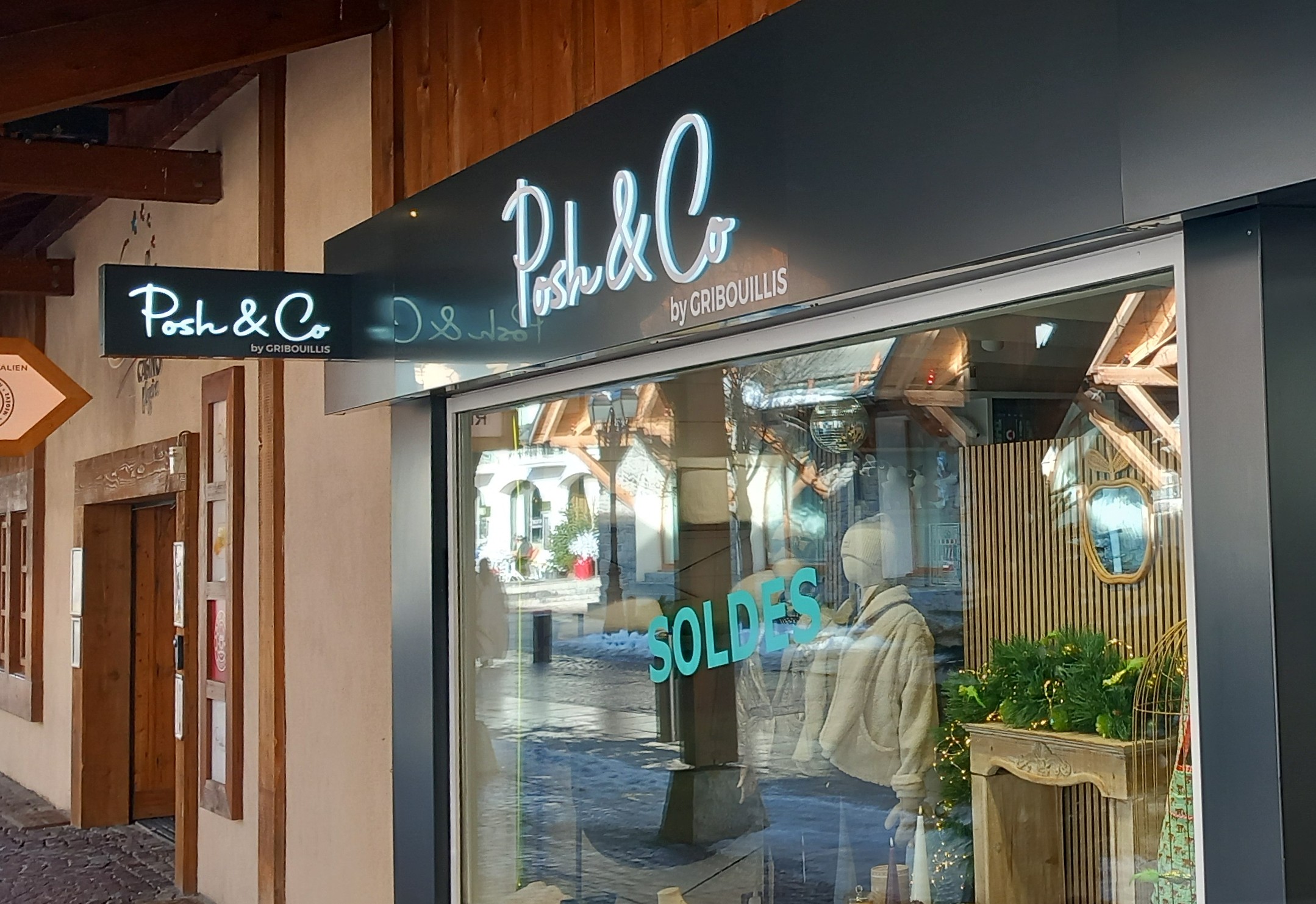 Changement de nom pour la boutique Gribouillis Home à Megève, qui devient Posh & Co, spécialisé dans la mode et le prêt à porter féminin. Toujours sous la signature de Carole ! Pour l’occasion nous avons changer les enseignes lumineuses pour une identité claire.
