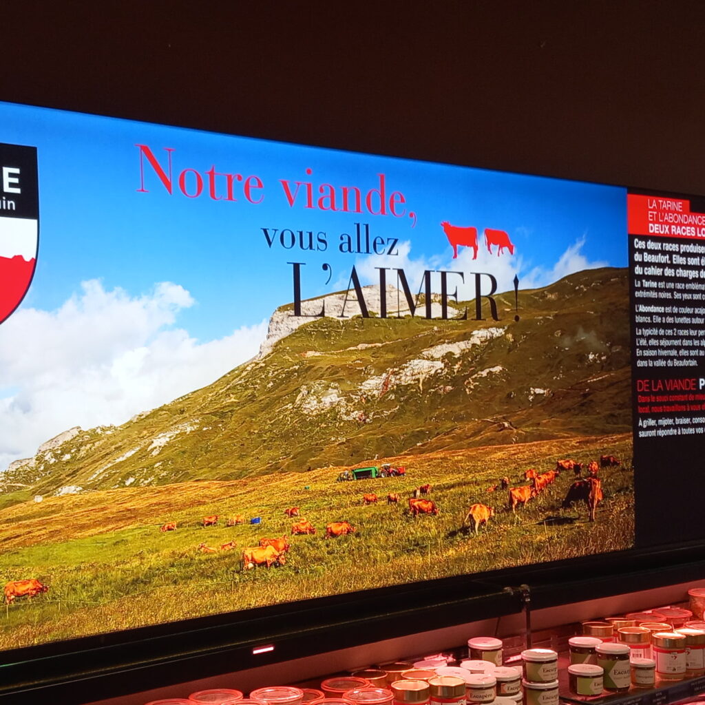 Pour mettre en avant ses viandes d’exception en caissettes sous-vide , la Coopérative Beaufort a opté pour une bâche tendue sur mesure. Un visuel impactant qui valorise le savoir-faire local et la qualité des produits , tout en attirant l’œil des amateurs de bonne viande. Une réalisation signée Dieup’Art , au service des producteurs du terroir !