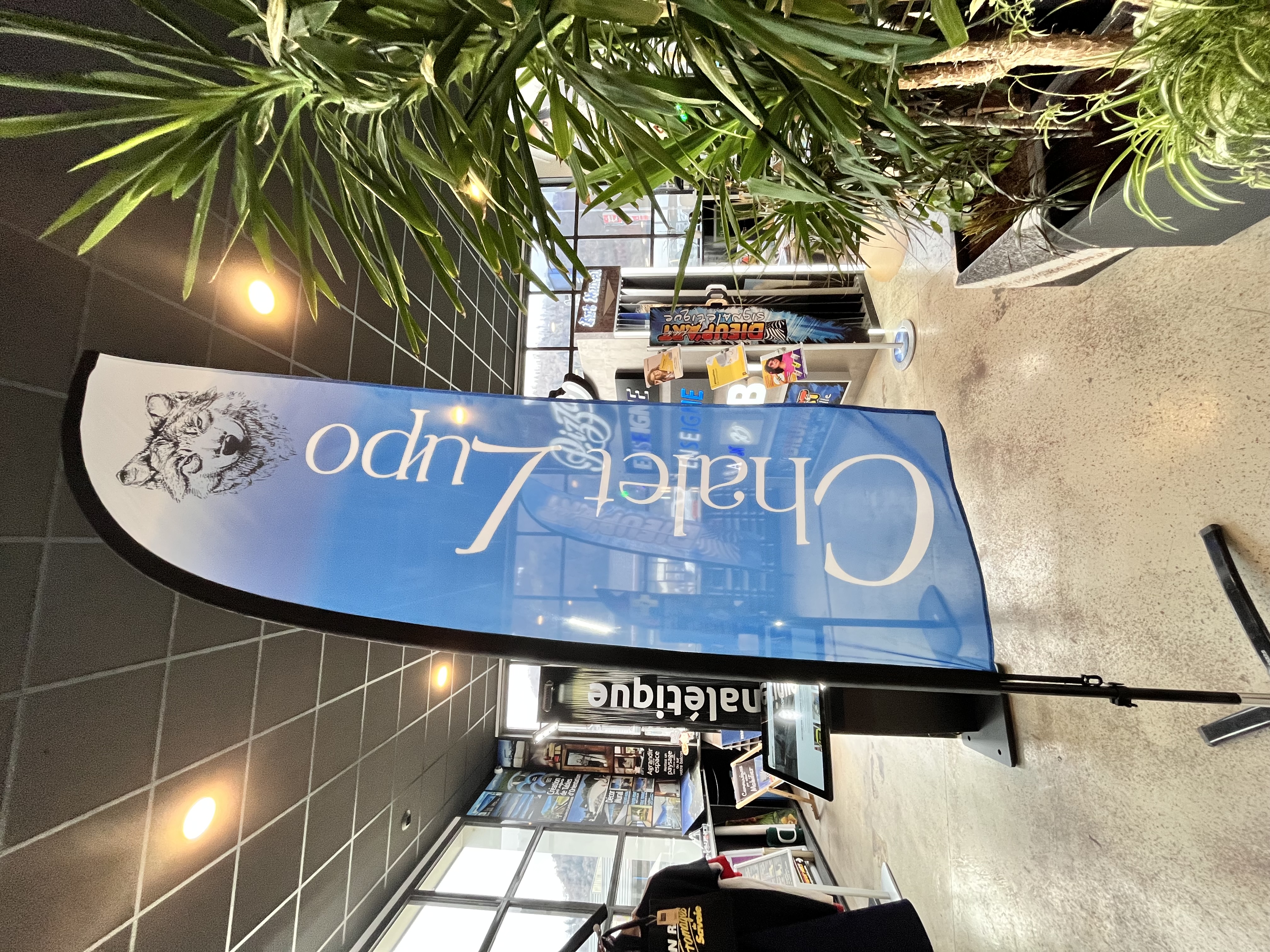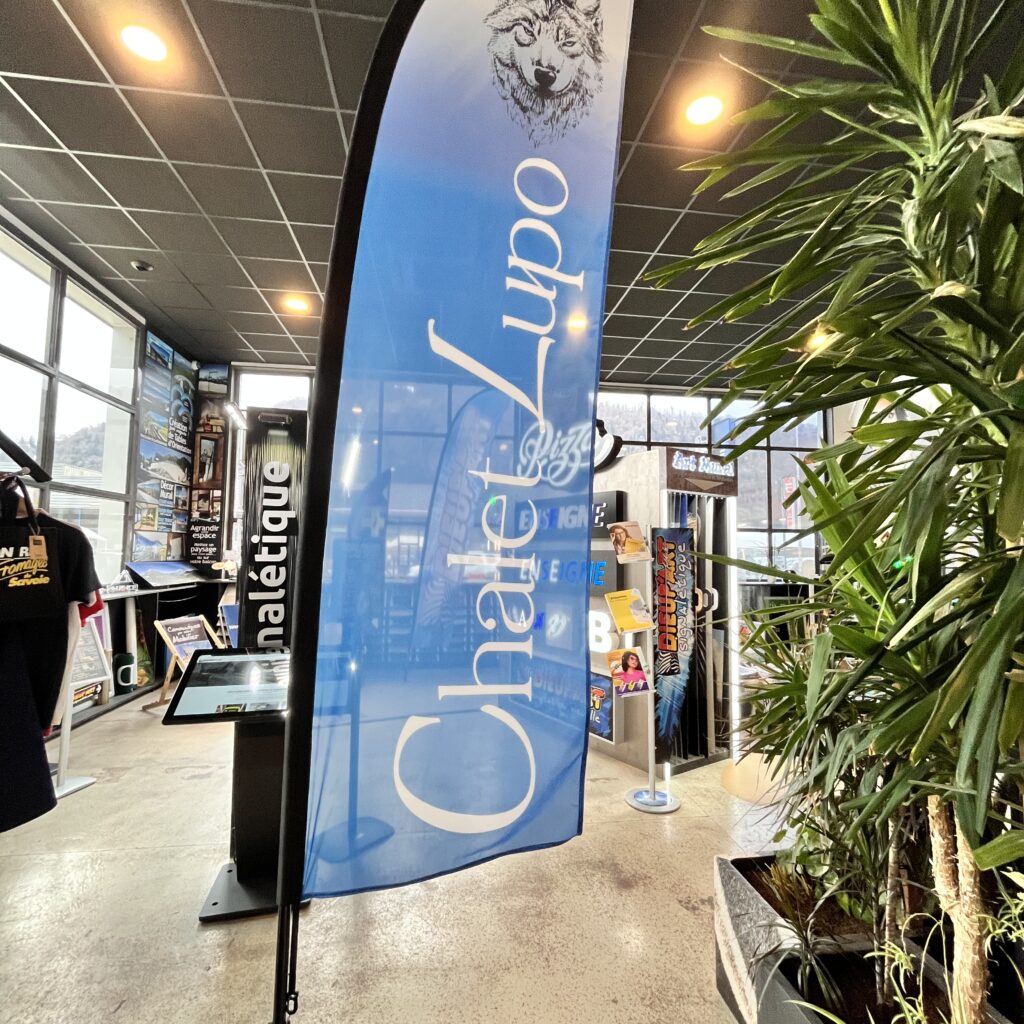 Réalisation d’oriflammes personnalisés aux couleurs du Chalet Lupo sur les pistes !