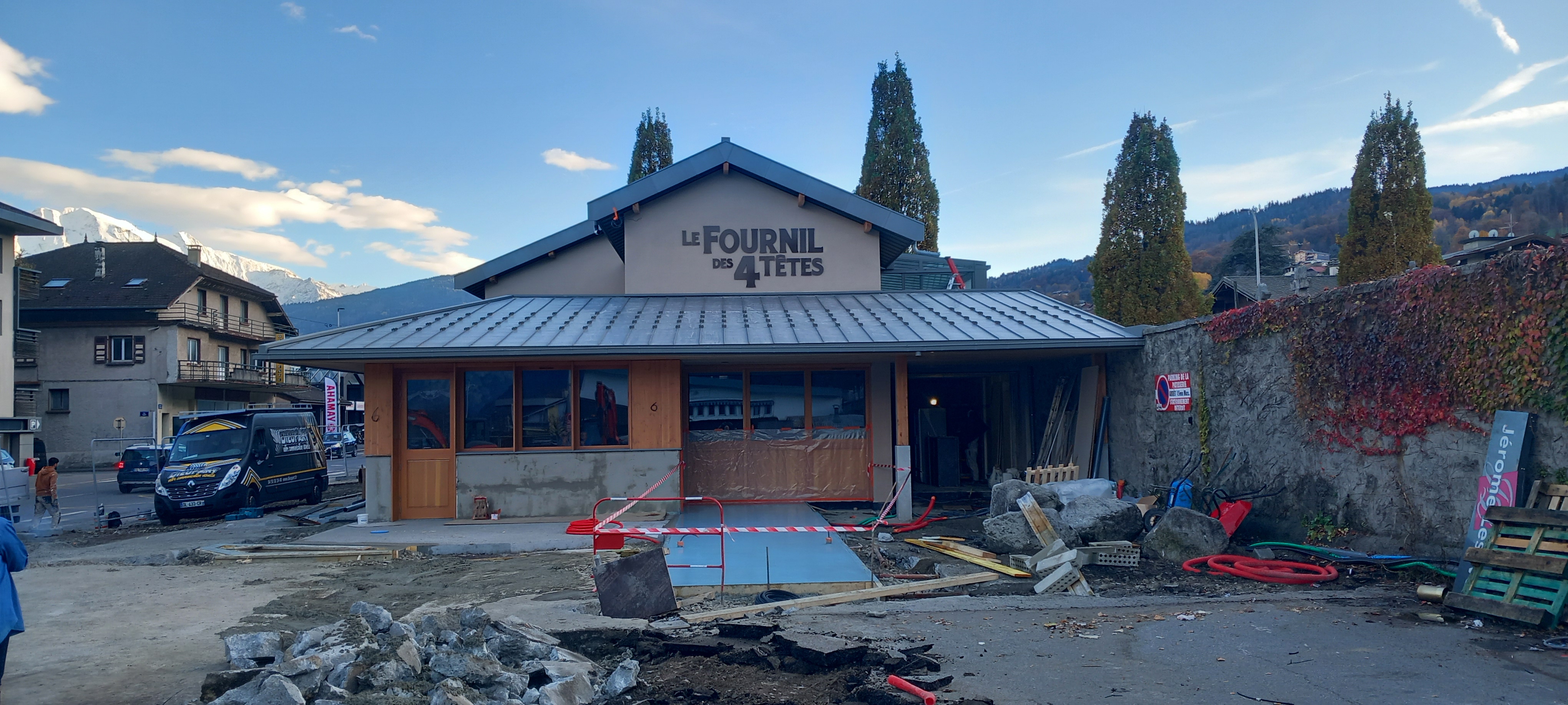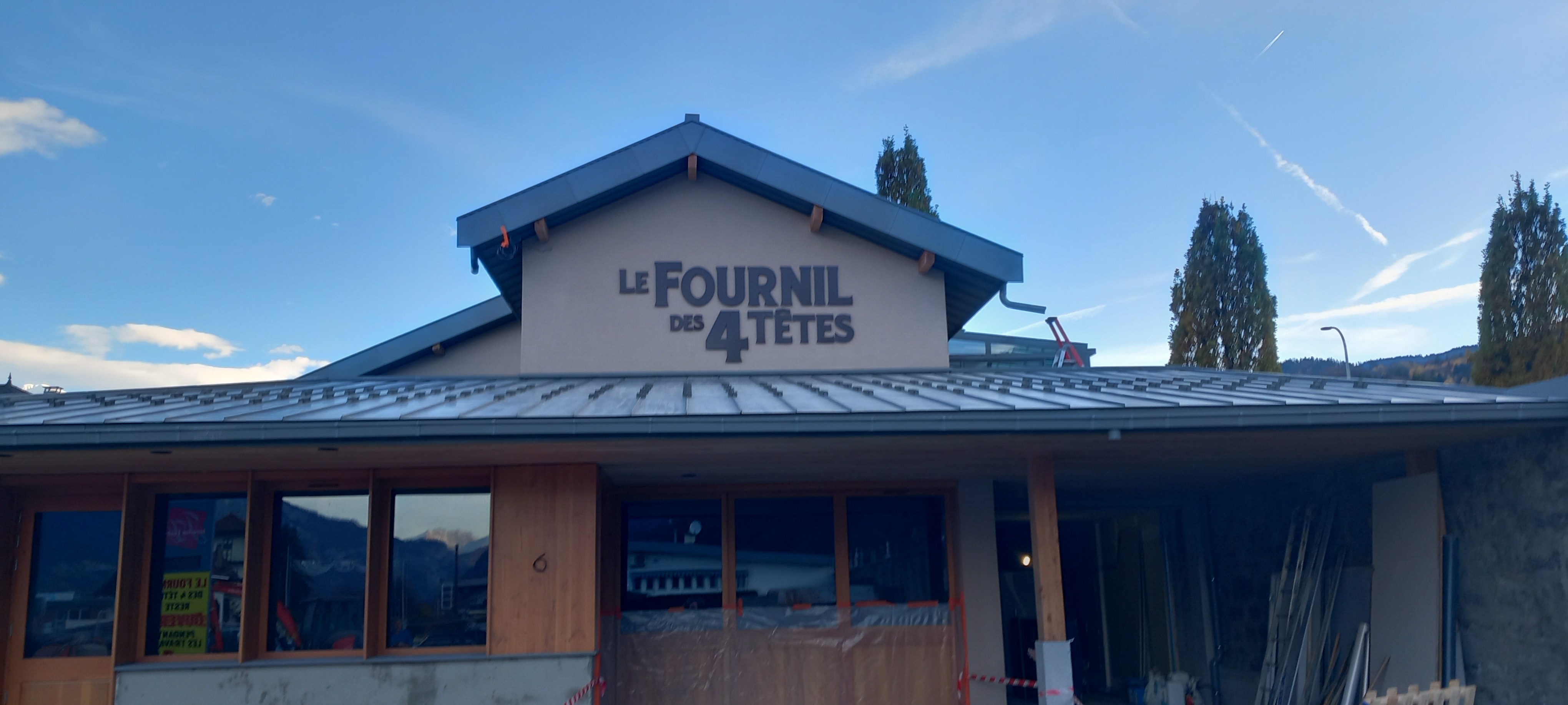 Le Fournil des 4 têtes à Sallanches a fait peau neuve, et pour l’occasion nous avons réalisé la nouvelle enseigne sur le bâtiment, ainsi que le totem lumineux en bord de route, toujours sous le nom de Jérome Lesève.